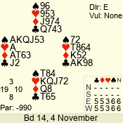 Con | Dc | Res | Score | Ld | Pairs | Rd | Tbl | 3 N | S | +1 | 630 | 4 | 04 - 06 | 5 | 4 |