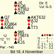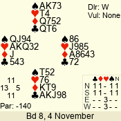 Con | Dc | Res | Score | Ld | Pairs | Rd | Tbl | 3  | W | = | -140 | 6 | 03 - 04 | 6 | 3 |