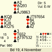 Con | Dc | Res | Score | Ld | Pairs | Rd | Tbl | 4  | S | = | 620 | K | 04 - 04 | 1 | 4 |