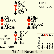 Con | Dc | Res | Score | Ld | Pairs | Rd | Tbl | 3 N | S | = | 400 | 3 | 05 - 02 | 4 | 5 |