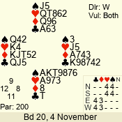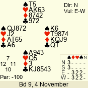 Con | Dc | Res | Score | Ld | Pairs | Rd | Tbl | 3 N | S | = | 400 | 3 | 02 - 04 | 5 | 2 |