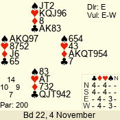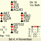 Con | Dc | Res | Score | Ld | Pairs | Rd | Tbl | 4  | E | -4 | 400 | A | 05 - 06 | 6 | 5 |