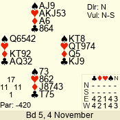 Con | Dc | Res | Score | Ld | Pairs | Rd | Tbl | 4  | N | +1 | 450 | 3 | 05 - 04 | 2 | 5 |