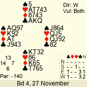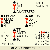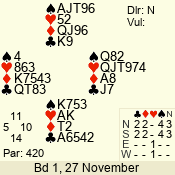 3 NT | S | +1 | 430 | 4 | 02 - 06 | 5 | 2 |