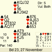 Con | Dc | Res | Score | Ld | Pairs | Rd | Tbl | 2  | S | +1 | 140 | A | 05 - 05 | 1 | 5 |