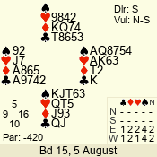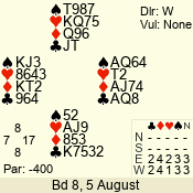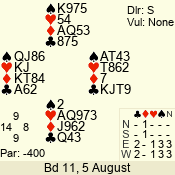 Con | Dc | Res | Score | Ld | Pairs | Rd | Tbl | 5  | S | = | 400 | Q | 02 - 15 | 24 | 2 |