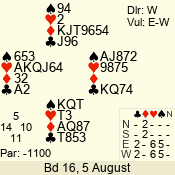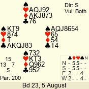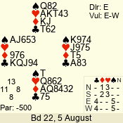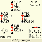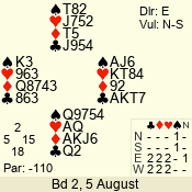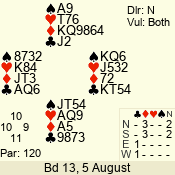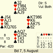 Con | Dc | Res | Score | Ld | Pairs | Rd | Tbl | 1 N x | E | -3 | 500 | 5 | 07 - 04 | 20 | 7 |