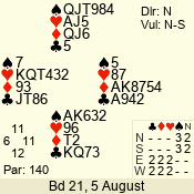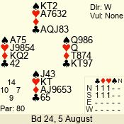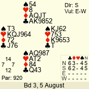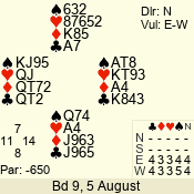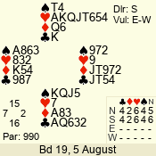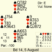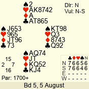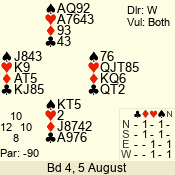 Con | Dc | Res | Score | Ld | Pairs | Rd | Tbl | 4 x | S | +1 | 690 | K | 12 - 14 | 15 | 12 |