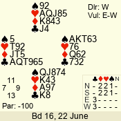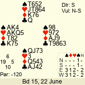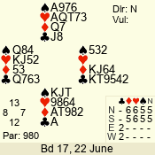 Con | Dc | Res | Score | Ld | Pairs | Rd | Tbl | 6 NT | N | = | 1440 | 2 | 05 - 08 | 6 | 5 |
