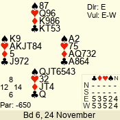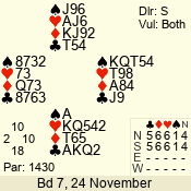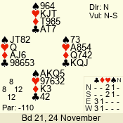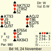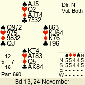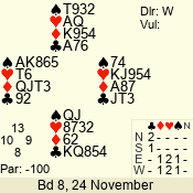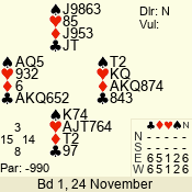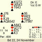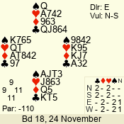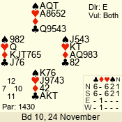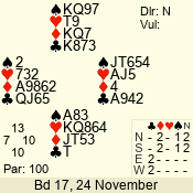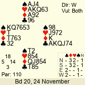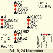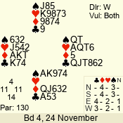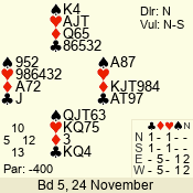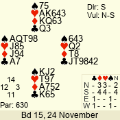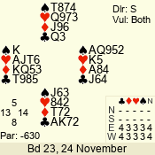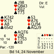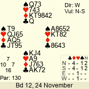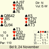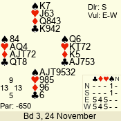 | 3 NT | W | +1 | -630 | 3 | 03 - 06 | 4 | 3 |
