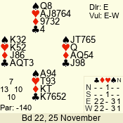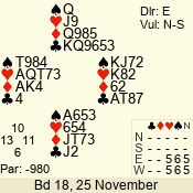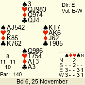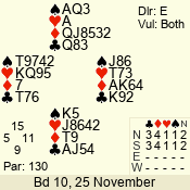 Con | Dc | Res | Score | Ld | Pairs | Rd | Tbl | 5 NT | E | -1 | 100 | J | 03 - 09 | 8 | 3 |