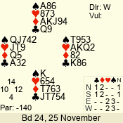 3 NT | W | +3 | -690 | 2 | 12 - 12 | 1 | 12 |