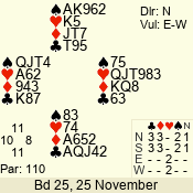 3 NT | W | +1 | -430 | Q | 11 - 06 | 6 | 11 |