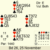 Con | Dc | Res | Score | Ld | Pairs | Rd | Tbl | 6 NT | S | = | 1440 | 5 | 09 - 05 | 5 | 9 |