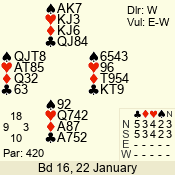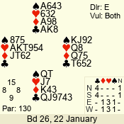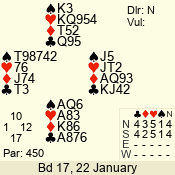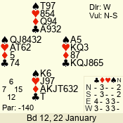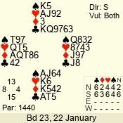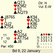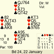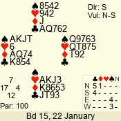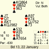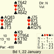 | 3 NT | S | +1 | 430 | 5 | 03 - 09 | 13 | 3 |