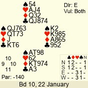 | 3 NT | S | +1 | 430 | J | 04 - 04 | 12 | 4 |