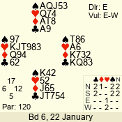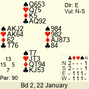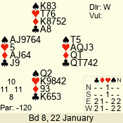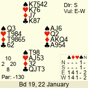 | 3 NT | S | +1 | 430 | 2 | 01 - 11 | 2 | 1 |