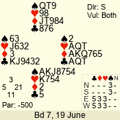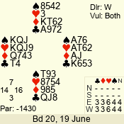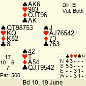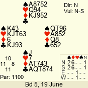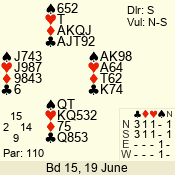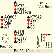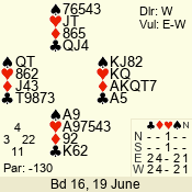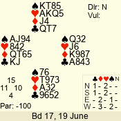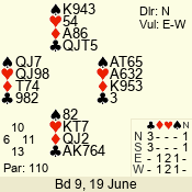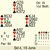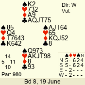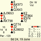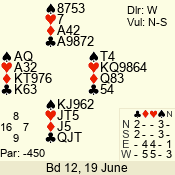 Con | Dc | Res | Score | Ld | Pairs | Rd | Tbl | 6 NT | W | -2 | 100 | Q | 02 - 06 | 6 | 2 |