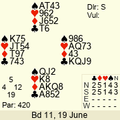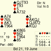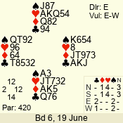 Con | Dc | Res | Score | Ld | Pairs | Rd | Tbl | 6 NT | S | = | 1440 | J | 01 - 02 | 9 | 1 |