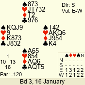 3 NT | W | +1 | -430 | K | 03 - 09 | 4 | 3 |