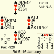 3 NT | W | +2 | -660 | 7 | 05 - 01 | 5 | 5 |