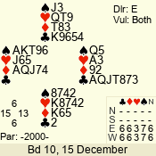 3 NT | W | +2 | -460 | 6 | 10 - 04 | 7 | 10 |