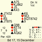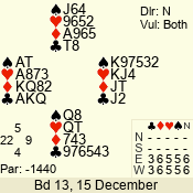 Con | Dc | Res | Score | Ld | Pairs | Rd | Tbl | 3 NT | N | +1 | 430 | 6 | 04 - 08 | 13 | 4 |