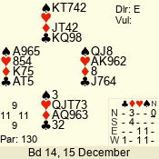 3 NT | S | +1 | 630 | 3 | 11 - 10 | 2 | 11 |