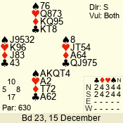 Con | Dc | Res | Score | Ld | Pairs | Rd | Tbl | 3 NT | S | +1 | 630 | 5 | 01 - 01 | 12 | 1 |