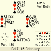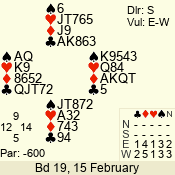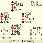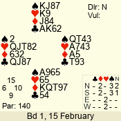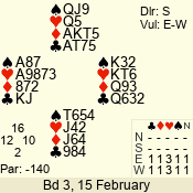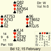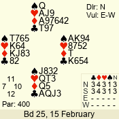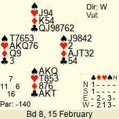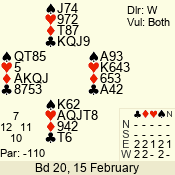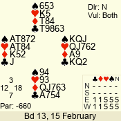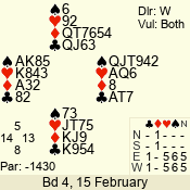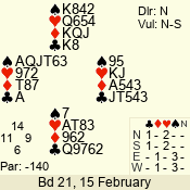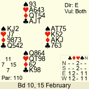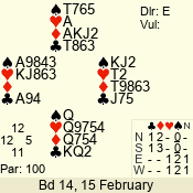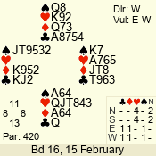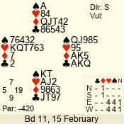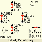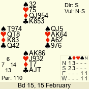 | 3 NT | S | +1 | 430 | A | 08 - 10 | 10 | 8 |