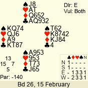 | 3 NT | E | +1 | -630 | J | 04 - 09 | 7 | 4 |