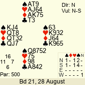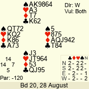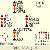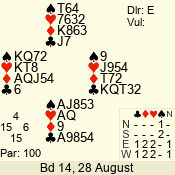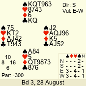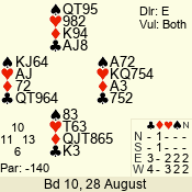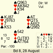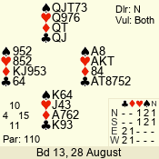 Con | Dc | Res | Score | Ld | Pairs | Rd | Tbl | 3 NT | E | -1 | 100 | 5 | 08 - 11 | 9 | 8 |