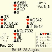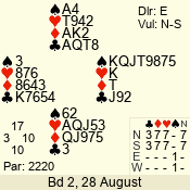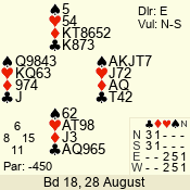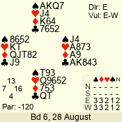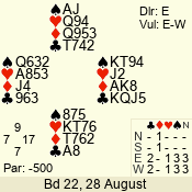 Con | Dc | Res | Score | Ld | Pairs | Rd | Tbl | 2 NT | E | -2 | 200 | 4 | 06 - 08 | 10 | 6 |