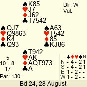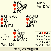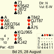 Con | Dc | Res | Score | Ld | Pairs | Rd | Tbl | 4  | S | = | 620 | K | 06 - 10 | 8 | 6 |
