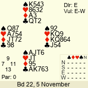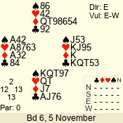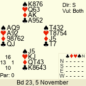 Con | Dc | Res | Score | Ld | Pairs | Rd | Tbl | 4 x | E | -3 | 500 | 6 | 05 - 01 | 5 | 5 |