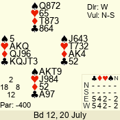 Con | Dc | Res | Score | Ld | Pairs | Rd | Tbl | 3 NT x | E | -4 | 800 | A | 10 - 05 | 8 | 2 |