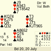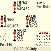 Con | Dc | Res | Score | Ld | Pairs | Rd | Tbl | 1 NT | N | +3 | 180 | 7 | 02 - 08 | 6 | 6 |