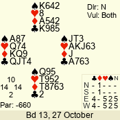 Con | Dc | Res | Score | Ld | Pairs | Rd | Tbl | 3 N | N | +2 | 660 | J | 02 - 02 | 12 | 2 |