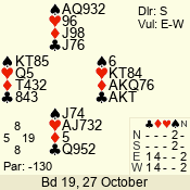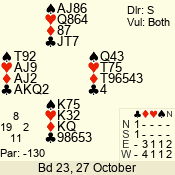 Con | Dc | Res | Score | Ld | Pairs | Rd | Tbl | 3 N | N | +1 | 430 | 4 | 03 - 06 | 9 | 3 |