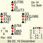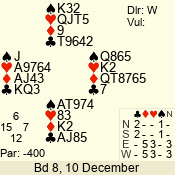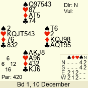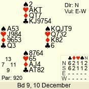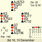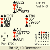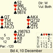 | 3 NT | W | +1 | -430 | 2 | 07 - 04 | 4 | 7 |