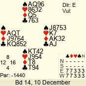 | 3 NT | E | +1 | -430 | 7 | 02 - 02 | 1 | 2 |