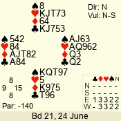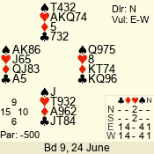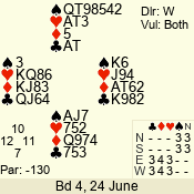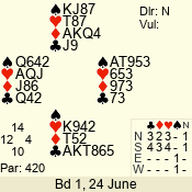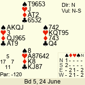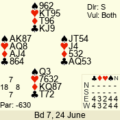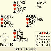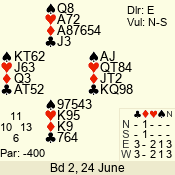 Con | Dc | Res | Score | Ld | Pairs | Rd | Tbl | 4  | S | +1 | 450 | A | 06 - 05 | 2 | 6 |
