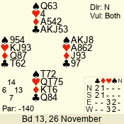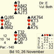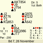 3 NT | S | -4 | -200 | J | 11 - 06 | 6 | 11 |