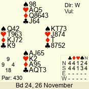 Con | Dc | Res | Score | Ld | Pairs | Rd | Tbl | 3 NT | N | +1 | 430 | 6 | 05 - 07 | 13 | 5 |