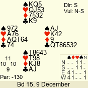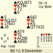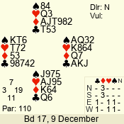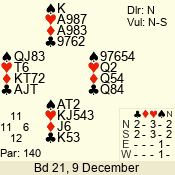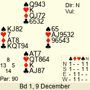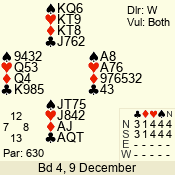 Con | Dc | Res | Score | Ld | Pairs | Rd | Tbl | 3 NT | N | +1 | 630 | 9 | 04 - 04 | 11 | 4 |