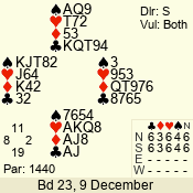 Con | Dc | Res | Score | Ld | Pairs | Rd | Tbl | 3 NT | S | +3 | 690 | 8 | 01 - 10 | 12 | 1 |
