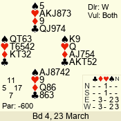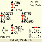 3 NT | S | +1 | 430 | 5 | 04 - 04 | 1 | 4 |