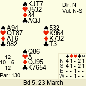 Con | Dc | Res | Score | Ld | Pairs | Rd | Tbl | 2  | N | +2 | 130 | 4 | 05 - 01 | 5 | 5 |