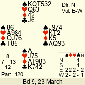 Con | Dc | Res | Score | Ld | Pairs | Rd | Tbl | 3 NT | N | +2 | 460 | 8 | 07 - 08 | 8 | 7 |
