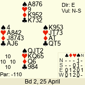 Con | Dc | Res | Score | Ld | Pairs | Rd | Tbl | 2 NT | E | +1 | -150 | Q | 08 - 05 | 4 | 8 |
